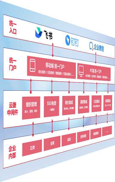 对协作平台提供支持服务,,支持企业应用与协作平台对接,,,,包含组织同步、、消息集成、、、待办集成等。。支持目前主流的协作平台:钉钉、、企微和飞书。。。